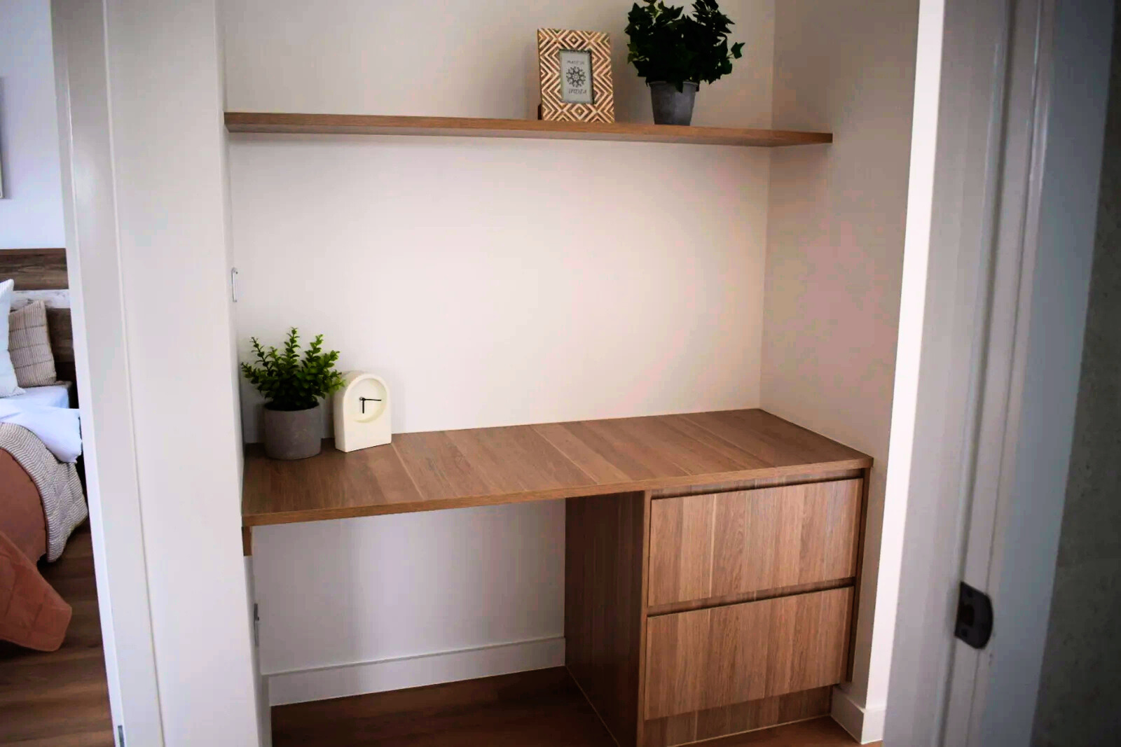 Working from home is easier with custom-designed desks, storage, and shelving that fits your workflow and maximises your space.